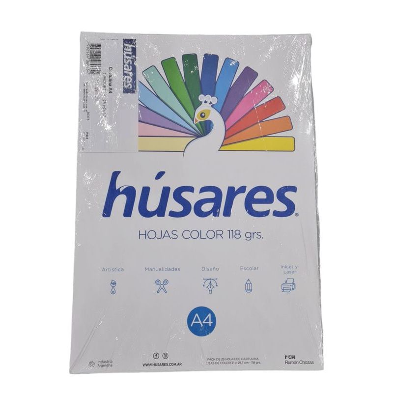 CARTULINA HUSARES A4 118GRS X25HS CELESTE PASTEL