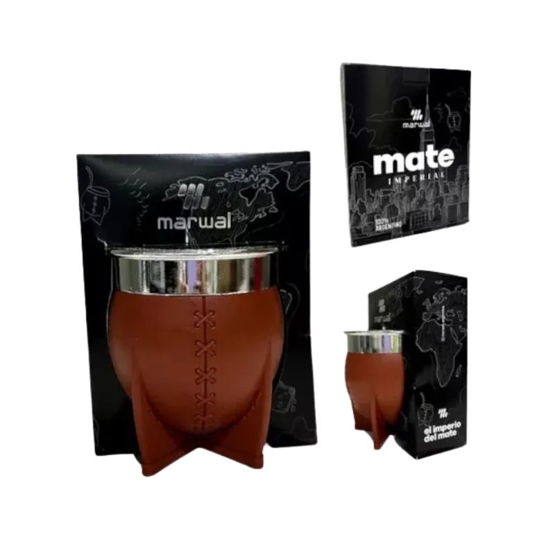 MATE IMPERIAL CERAMICA Y CUERO VIROLA DE ALPACA CINCELADA