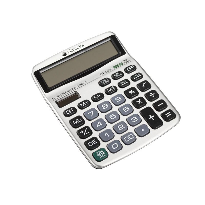 LA CALCULADORA SKYCOLOR CT-1056 ES IDEAL PARA OFICINA, ESTUDIO O USO COTIDIANO. SU DISEÑO COLOR SILVER METÁLICO LE DA UN TOQUE MODERNO Y ELEGANTE, MIENTRAS QUE SU PANTALLA AMPLIA DE 12 DÍGITOS PERMITE UNA LECTURA CÓMODA Y CLARA.