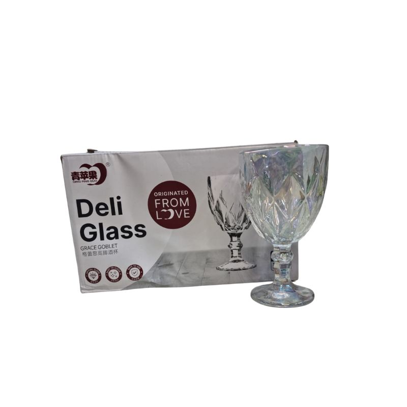 SET X 6 COPAS DE VIDRIO LABRADO COLOR TORNASOLADA