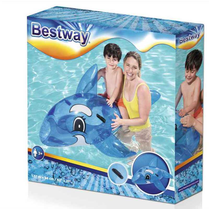 FLOTADOR BALLENA COLOR AZUL, MEDIDAS DE 1.57M X 94CM, VALVULAS DE SEGURIDAD, MANIJAS REFORZADAS, INCLUYE PARCHE DE REPARACION