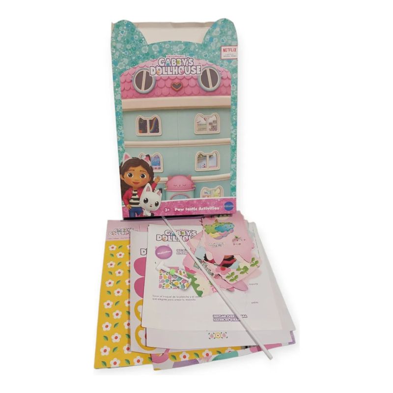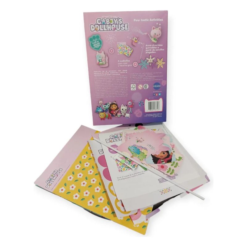 SET DE ACTIVIDADES CREATIVAS PARA CONSTRUIR MOLINILLOS DE VIENTO, GUIRNALDAS Y MÓVILES CON LOS PERSONAJES DE GABBY´S DOLLHOUSE.