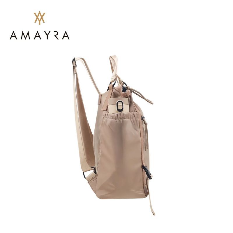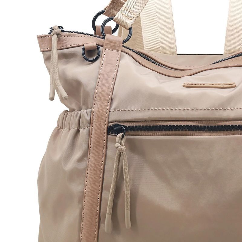 LA MOCHILA AMAYRA (67.5300017) VISÓN ES UN ACCESORIO URBANO CONFECCIONADO EN POLIÉSTER Y DETALLES EN CUERO SINTÉTICO (PU), DESTACADA POR SU DISEÑO DE TIPO "BOLSO-MOCHILA" QUE COMBINA ESTILO Y GRAN CAPACIDAD.