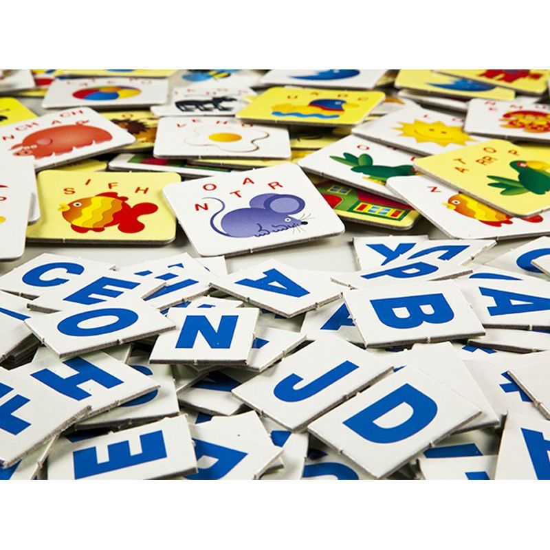 CONTENIDO 27 FICHAS EN IDIOMA ESPAÑOL, 27 FICHAS EN IDIOMA INGLÉS, 112 FICHAS CON LETRAS.
