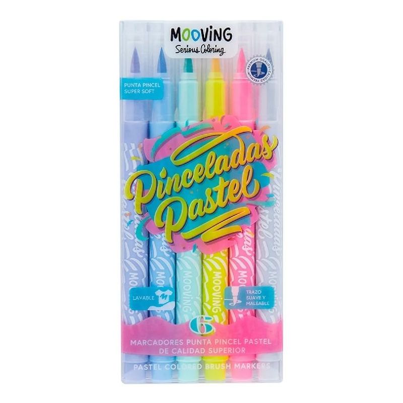 MARCADORES MOOVING PINCELADAS PASTEL X6