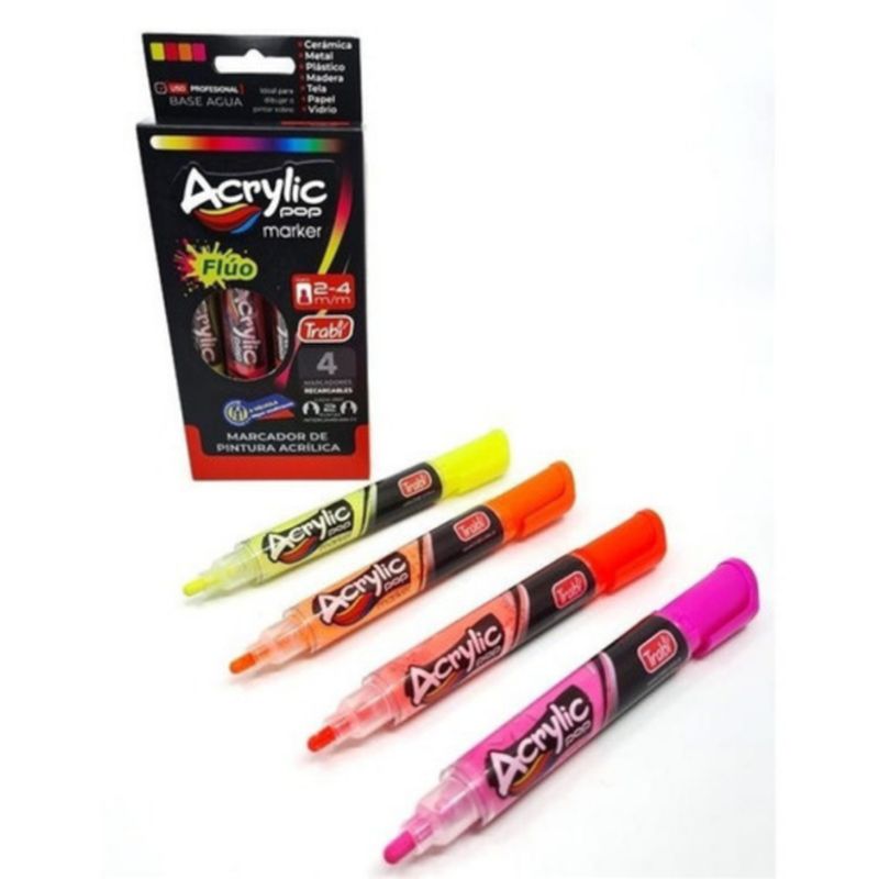 MARCADORES TRABI ACRILYC POP X4 FLUO