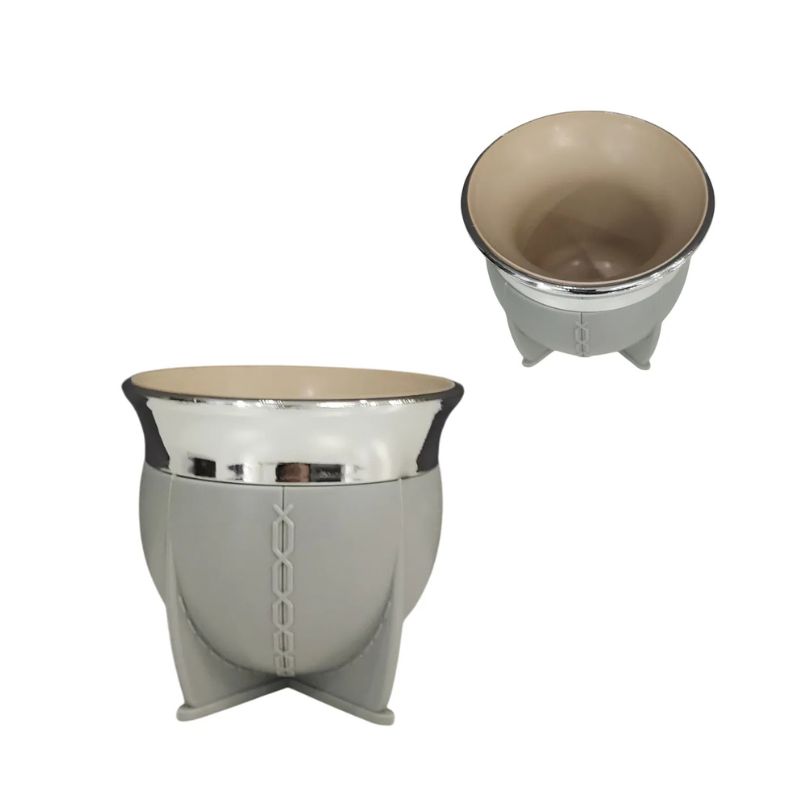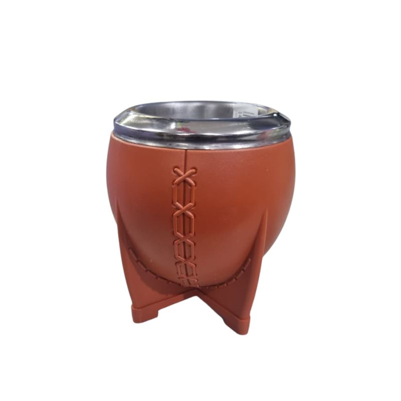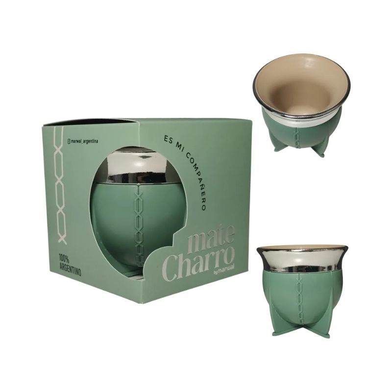 MATE IMPERIAL CERAMICA Y CUERO VIROLA DE ALPACA CINCELADA