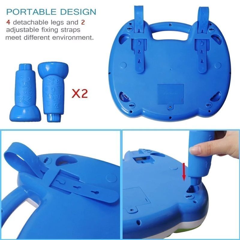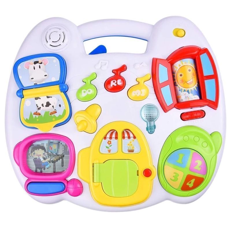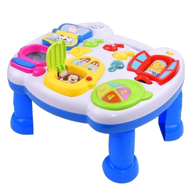 MESA DIDÁCTICA DE ACTIVIDADES PARA BEBÉ, CON PANEL INTERACTIVO. INCLUYE VARIADOS SONIDOS Y MELODÍAS ENTRE ELLAS "DO-RE-MI". CON 6 ÁREAS DISTINTAS PARA EXPLORAR, DESCUBRIR Y DIVERTIRSE. ENCIENDE UNA LUZ ROJA AL TOCAR LOS BOTONES. POSEE 4 PATAS EXTRAÍBLES Y SUJETADORES PARA COLGAR EN LOS BARROTES DE LA CUNA, ESTO PERMITE DARLE UN DOBLE USO.