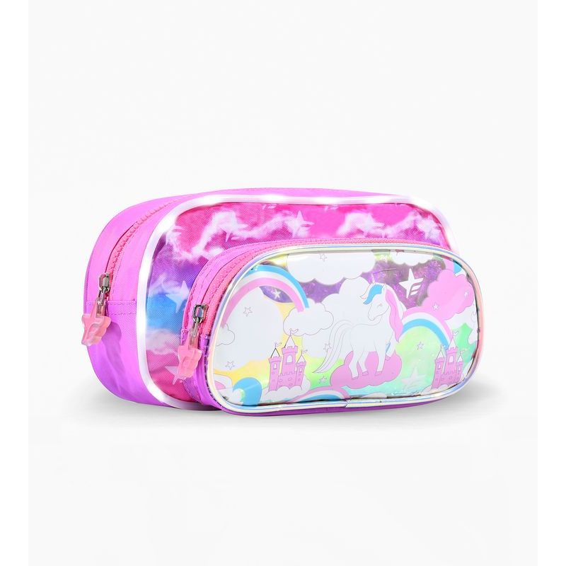 CARTUCHERA GRANDE 2 CIERRE, CON HOLGRAMA Y APLIQUES SUBLIMADOS EN RASO.