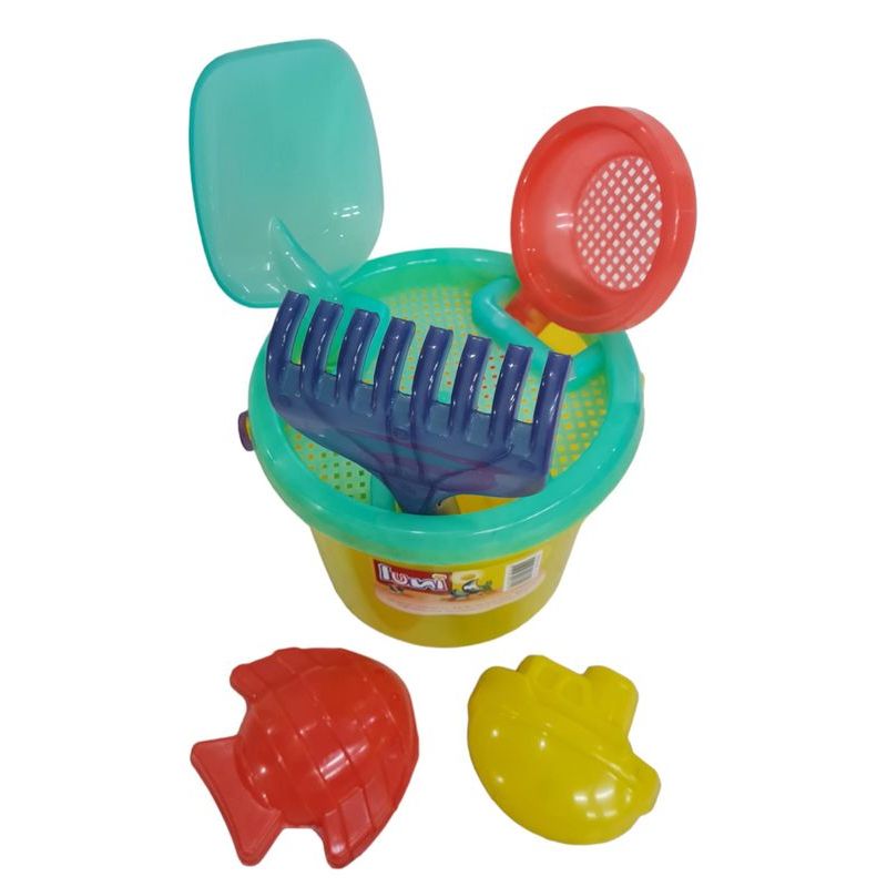 CONTIENE: 1 BALDE, 1 COLADOR, 1 RASTRILLO, 1 PALA Y 2 FORMAS!