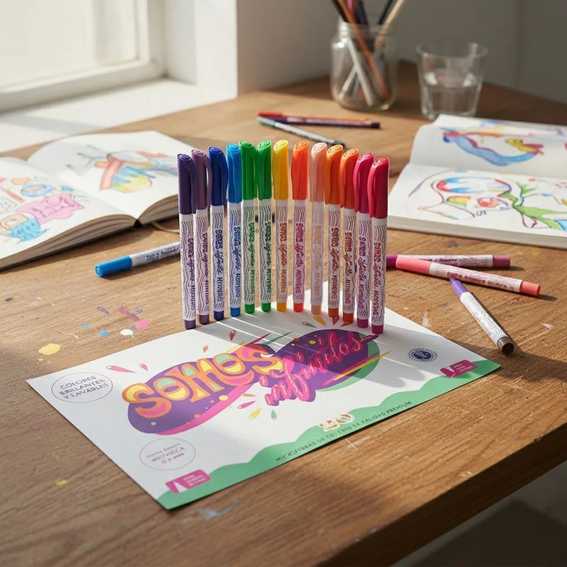 DESCUBRE LA VERSATILIDAD DE LOS MARCADORES DE MICROFIBRA MOOVING COLORING, UN SET DE 20 COLORES BRILLANTES QUE TRANSFORMARÁN TUS PROYECTOS CREATIVOS. CON UN TRAZO SUAVE Y PRECISO, CADA MARCADOR OFRECE UNA EXPERIENCIA DE ESCRITURA SATISFACTORIA, IDEAL PARA TRABAJOS DE DETALLADO. SU TINTA A BASE DE AGUA GARANTIZA UNA APLICACIÓN FÁCIL Y SEGURA, SIENDO LAVABLES PARA MAYOR COMODIDAD. CON UNA DURACIÓN IMPRESIONANTE QUE SUPERA LOS 350 METROS DE ESCRITURA, ESTOS MARCADORES SON PERFECTOS PARA QUIENES BUSCAN CALIDAD Y RESISTENCIA. PRESENTADOS EN UN PRÁCTICO ESTUCHE EN BLISTER, SU DISEÑO SERIO Y ATRACTIVO LOS CONVIERTE EN LA ELECCIÓN IDEAL PARA ESTUDIANTES Y ARTISTAS. ADEMÁS, SON NO TÓXICOS, LO QUE LOS HACE APTOS PARA TODAS LAS EDADES. LA PUNTA FINA DE 0.4MM PERMITE DIBUJAR CON GRAN PRECISIÓN EN PAPEL Y OTRAS SUPERFICIES. ¡DEJA VOLAR TU IMAGINACIÓN CON MOOVING!