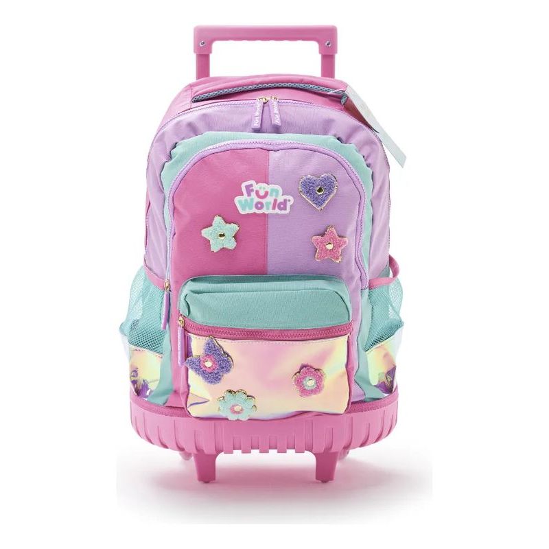 LA MOCHILA CON CARRO FW FUN WORLD 18'' PATCH DIY ES LA ELECCIÓN PERFECTA PARA LAS NIÑAS QUE BUSCAN ESTILO Y FUNCIONALIDAD EN SU DÍA A DÍA ESCOLAR. CON UNA CAPACIDAD DE 18 LITROS, OFRECE SUFICIENTE ESPACIO PARA LIBROS, CUADERNOS Y OTROS ÚTILES ESCOLARES, TODO ORGANIZADO EN SUS TRES BOLSILLOS. SU DISEÑO ATRACTIVO Y MODERNO SE ADAPTA A LAS TENDENCIAS ACTUALES, PERMITIENDO QUE CADA NIÑA EXPRESE SU PERSONALIDAD. FABRICADA EN GUCCI NYLON Y PVC, ESTA MOCHILA ES RESISTENTE Y DURADERA, IDEAL PARA EL USO DIARIO. CON UN PESO DE SOLO 1,3 KG, ES FÁCIL DE TRANSPORTAR, YA SEA LLEVÁNDOLA A MANO O UTILIZANDO SU PRÁCTICO CARRO CON RUEDAS. LAS DIMENSIONES DE 54 CM DE ALTURA, 31 CM DE ANCHO Y 24,5 CM DE PROFUNDIDAD ASEGURAN QUE SE AJUSTE PERFECTAMENTE A LAS NECESIDADES DE LAS ESTUDIANTES.