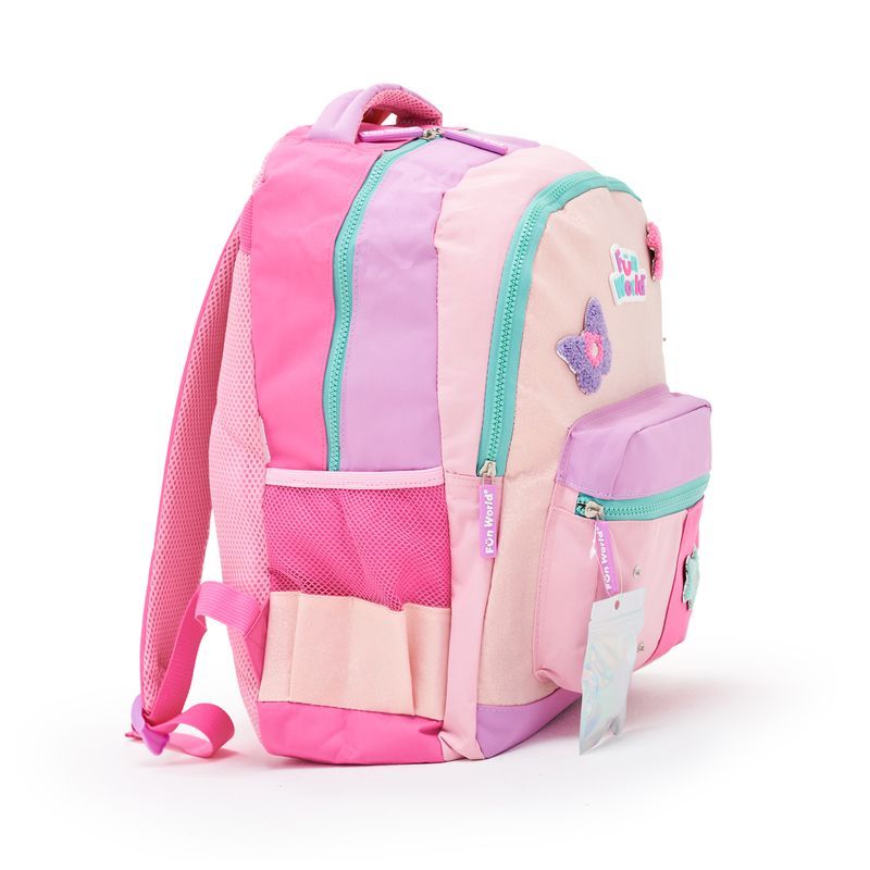 MOCHILA 17" LOVELY CONFECCIONADA EN CON ESTAMPADO A HOLOGRAFICO, DESTACA POR SU DISEÑO ORIGINAL Y MODERNO. CUENTA CON BOLSILLO DE PELUCHE, APLIQUES DE LENTEJUELAS Y GLITTER, PARCHES DE GOMA Y UN BOLSILLO FRONTAL DE PVC CON GLITTER Y CIERRE IMPRESO. INCLUYE DOS PRÁCTICOS BOLSILLOS LATERALES PARA LLEVAR LA BOTELLA SIEMPRE A MANO. TIENE MANIJA SUPERIOR Y CORREAS DE ESPALDA REFORZADAS, QUE BRINDAN MAYOR COMODIDAD, RESISTENCIA Y DURABILIDAD EN EL USO DIARIO. SU ESPALDA CON SISTEMA AIR MESH. DISPONIBLE EN DOS VARIANTES DE COLOR: ROSA Y VIOLETA. IDEAL PARA ACOMPAÑAR A LOS NIÑOS EN SU RUTINA DIARIA CON ESTILO Y PRACTICIDAD.