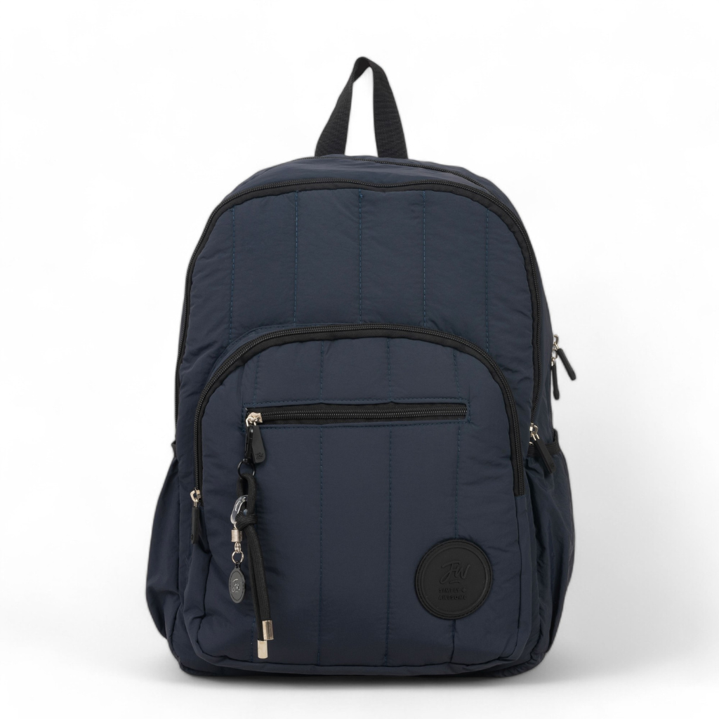 LA MOCHILA FW TWIST (17 PULGADAS) ES UNA OPCIÓN GRANDE Y ESPACIOSA. CUENTA CON DOS CIERRES EN LA PARTE SUPERIOR PARA UN ACCESO FÁCIL Y ORGANIZADO, Y DOS CIERRES MÁS PEQUEÑOS EN UN COMPARTIMENTO FRONTAL ADICIONAL QUE INCLUYE UN LLAVERO DE ACCESORIO. EN SU INTERIOR, OFRECE UN COMPARTIMENTO ESPECIALMENTE DISEÑADO PARA LAPTOP O CUADERNOS. ES IDEAL PARA QUIENES NECESITAN ESPACIO Y ORGANIZACIÓN EN SU MOCHILA.