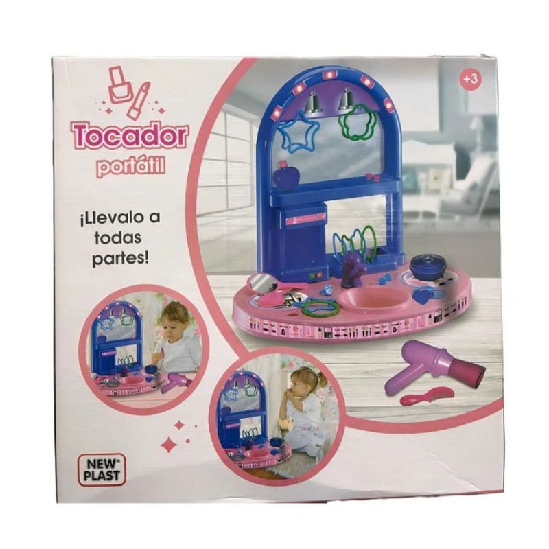 EL TOCADOR PORTÁTIL DE JUGUETE NEW PLAST ES EL COMPLEMENTO PERFECTO PARA QUE LOS MÁS PEQUEÑOS DE LA CASA PUEDAN JUGAR A SER ESTILISTAS Y MAQUILLADORES. CON SU DISEÑO COMPACTO Y PORTÁTIL, PODRÁN LLEVARLO A DONDE QUIERAN Y DISFRUTAR DE HORAS DE DIVERSIÓN CREATIVA.