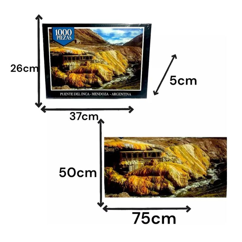 SUMÉRGETE EN LA BELLEZA DEL PAISAJE CON ESTE ROMPECABEZAS PUZZLES DE 1000 PIEZAS DE LA MARCA FAYDI. CON UNA TEMÁTICA DE PUENTE DEL INCA, ESTE ROMPECABEZAS ES PERFECTO PARA LOS AMANTES DE LOS DESAFÍOS Y LA NATURALEZA. CON UNA ALTURA DE 50 CM Y UN LARGO DE 75 CM, ESTE ROMPECABEZAS OFRECE HORAS DE DIVERSIÓN Y ENTRETENIMIENTO PARA TODAS LAS EDADES.