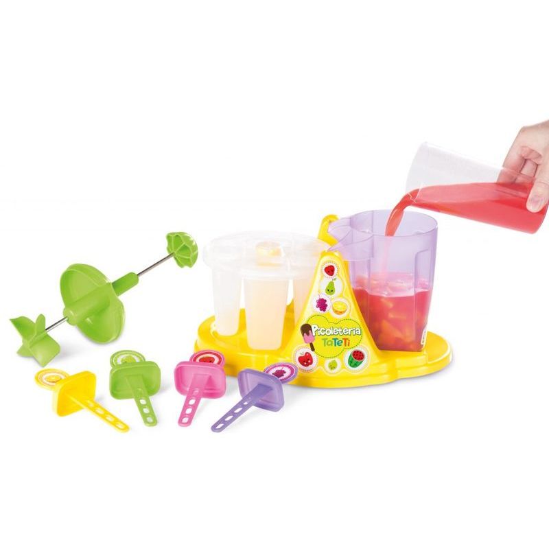 LA PICOLETERIA CALESITA VIENE CON 4 PALITOS DE COLORES LAVABLES, FORMA Y BOL PARA MEZCLAR. ¡SIMPLEMENTE MEZCLA FRUTA CON YOGUR O JUGO! ¡HACER PALITOS HELADOS SE CONVIRTIÓ EN UNA DIVERSIÓN!