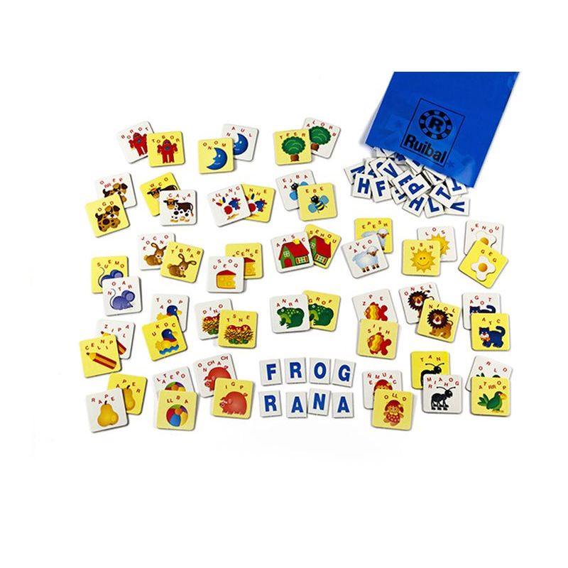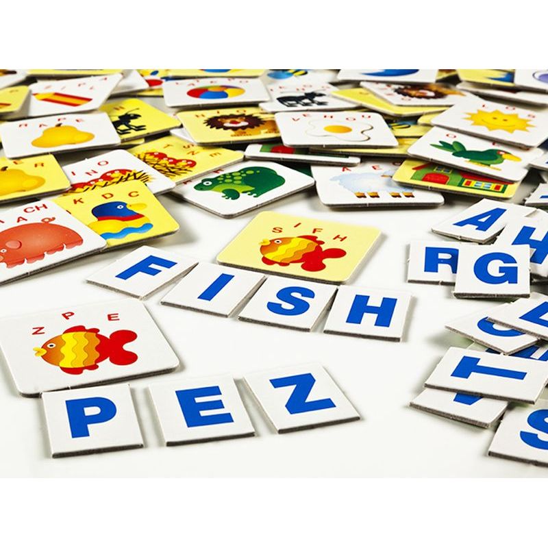 CONTENIDO 27 FICHAS EN IDIOMA ESPAÑOL, 27 FICHAS EN IDIOMA INGLÉS, 112 FICHAS CON LETRAS.