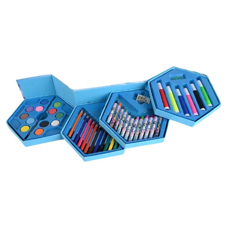 SET DE 46 CRAYONES AZUL, DISEÑADO ESPECIALMENTE PARA NIÑOS Y NIÑAS A PARTIR DE 3 AÑOS. CADA CRAYÓN TIENE UNA FORMA CILÍNDRICA QUE FACILITA SU AGARRE, PERMITIENDO QUE LOS PEQUEÑOS ARTISTAS SE EXPRESEN CON COMODIDAD Y CREATIVIDAD. LA CERA DE ALTA CALIDAD GARANTIZA COLORES VIBRANTES Y DURADEROS, IDEALES PARA DAR VIDA A SUS DIBUJOS Y MANUALIDADES. ESTE SET INCLUYE UN ESTUCHE PRÁCTICO QUE FACILITA SU TRANSPORTE Y ALMACENAMIENTO, MANTENIENDO LOS CRAYONES ORGANIZADOS Y LISTOS PARA USAR EN CUALQUIER MOMENTO. ADEMÁS, SU FÓRMULA LAVABLE ASEGURA QUE LAS MANCHAS EN LA ROPA O SUPERFICIES SE ELIMINEN FÁCILMENTE, BRINDANDO TRANQUILIDAD A LOS PADRES.