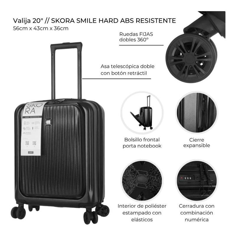 LA VALIJA SKORA 20´´ HARD PORTA NOTEBOOK ES LA ELECCIÓN PERFECTA PARA QUIEN BUSCA COMBINAR FUNCIONALIDAD Y ESTILO EN SUS VIAJES. CON UNAS DIMENSIONES DE 55 CM DE ALTURA, 40 CM DE ANCHO Y 20 CM DE PROFUNDIDAD, ESTA VALIJA TIENE UNA CAPACIDAD DE 45 LITROS, IDEAL PARA LLEVAR TODO LO ESENCIAL SIN COMPLICACIONES. SU DISEÑO RÍGIDO PROPORCIONA ROBUSTEZ Y PROTECCIÓN A TUS PERTENENCIAS, IDEAL PARA AQUELLOS QUE VALORAN LA SEGURIDAD EN CADA TRAYECTO. EQUIPADA CON CUATRO RUEDAS QUE FACILITAN EL DESPLAZAMIENTO, LA VALIJA SKORA 20´´ TE PERMITE MOVERTE CON COMODIDAD EN AEROPUERTOS Y ESTACIONES. SU SISTEMA DE CORREA INTERIOR ASEGURA QUE TUS ARTÍCULOS ESTÉN ORGANIZADOS Y EN SU LUGAR DURANTE EL VIAJE. ADEMÁS, CUENTA CON UN FUELLE EXTENSIBLE, QUE OFRECE LA POSIBILIDAD DE AUMENTAR SU CAPACIDAD EN CASO DE NECESITAR ESPACIO EXTRA